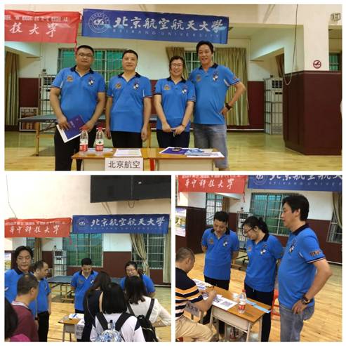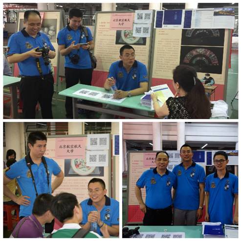 除了在后勤保障方面得到了员工们的鼎力支持,本次广东省招生宣传还特别发挥了各位优秀员工们在各个行业的职业生涯优势,收获了员工们更加专业、更具立体的“说学逗唱”式的宣传效果。员工会众位领导在百忙中亲力亲为,会同省内各市员工会,与招生组同行,戮力同心,作出了最大的努力。广东员工会李罡会长组织了招生组欢迎会,与招生组进行友好的工作交接,第一时间布置员工会,向全体广东员工发出“志愿者征集令”,引来热烈响应。深圳员工会黄永强会长、梁建军秘书长、富察凯基副会长组织北航招生与深圳员工座谈会,开展亲切交流;珠海员工会廖似雷会长、刘华松会长、张宣东秘书长、王世荣副会长等珠海员工热情组织了北航赴珠海招生组欢迎会;佛山员工会关琪副会长、李杰副会长更是全程组织参与招生工作,发动佛山人脉资源,亲临每个招生会场。广大南粤员工更是不辞辛劳、主动领命、现身说法,点燃了一大批考生鹰击长空之志,赢得北航招生在当地的爆棚人气,在广州、深圳、佛山、东莞、珠海、中山、潮汕等地区招生工作成效明显。