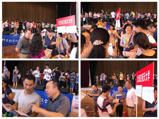 | 员工们在珠海一中咨询会上热情洋溢地为考生和家长介绍北航 |