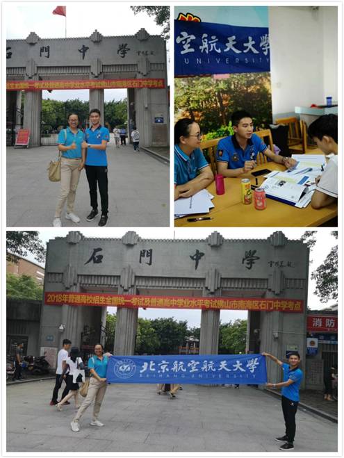在佛山,北航佛山员工会副秘书长关琪员工和从深圳专门赶来的孙欣员工全程陪同学院老师开展招生工作,北航佛山员工会副会长李杰员工派出两位助手及专车保障学院老师的各项便利。两位员工如同及时雨,为学院老师提供了人力、物力等等各方面的支持。咨询现场,关琪员工和孙欣员工不遗余力地答疑解惑,眉飞色舞地介绍了母校的优势和特色,立体、生动、鲜活地讲述北航校史、专业选择、校园生活、员工成就等等。在佛山的数日,刚好赶上一年最热的时候,员工员工们不畏酷暑,东奔西走,每场必到,连续数日全天候、全身心投入高招工作,全情投入,辛勤付出,以饱满的热情、亲和的态度和耐心的讲解,展现了北航员工的风采。