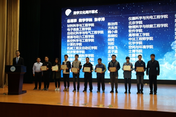 首先由杨义川、王进良、郭炳辉、孙玉泉老师为第二届北航数学类竞赛联盟的各位理事们颁发聘书。
