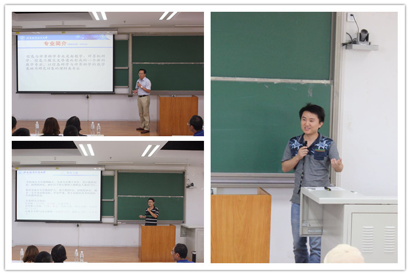数学与应用数学系主任高鹏教授,信息与计算科学系主任冯仁忠教授,统计系主任夏勇教授依次为我们介绍了各个不同专业的要求以及特点,鼓励同学们在未来都能够找到真正适合自己的专业方向,充满热情地去学习。