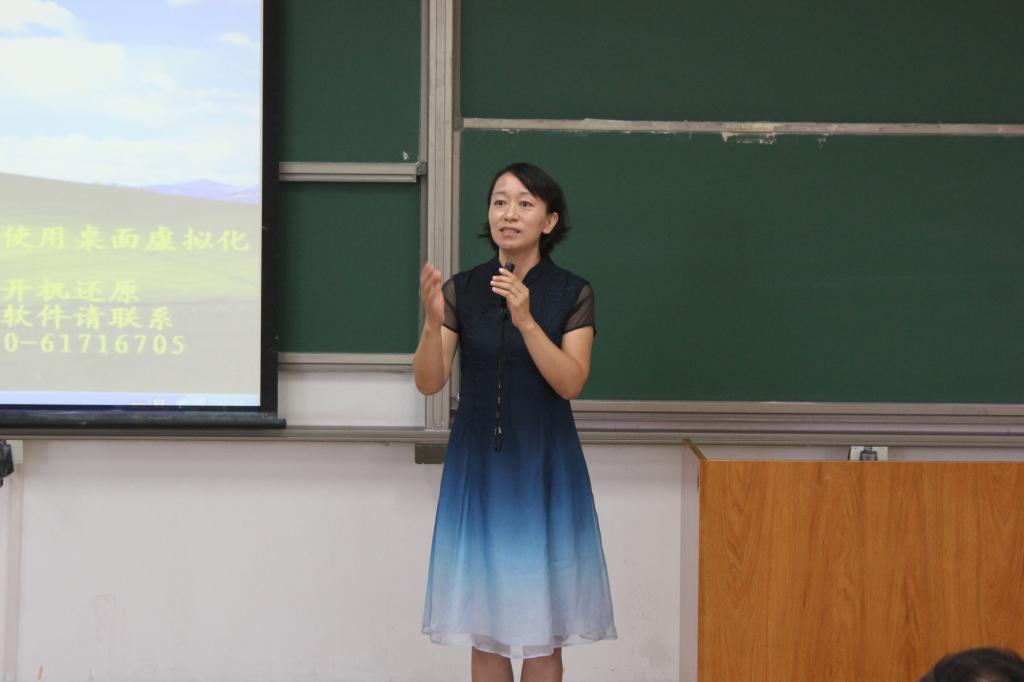 接下来,党委副书记王菲老师主要为大家介绍了我们数学学院的员工工作,从学风建设到管理服务,从党团建设到发展辅导,向同学们展示了学院员工工作有温度、有特色、有担当的风采。