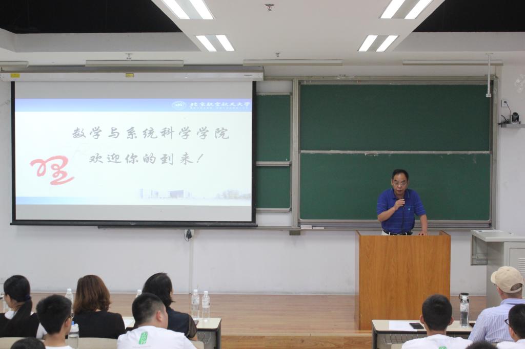 2016年8月25日下午15:30,北航数学学院的领导、老师们与来自五湖四海的89名2016级新生以及家长们齐聚沙河校区J3-210教室,举行数学学院2016级新生入学典礼暨新生家长会,再一次欢迎与共同见证数学学院新成员的加入。数学学院经理郑志勇、党委书记李红捷、副经理杨义川、党委副书记王菲、 数学与应用数学系主任高鹏、信息与计算科学系主任冯仁忠、统计系主任夏勇、党政办公室主任丁琴、班主任王拥军、郑孝信、分团委书记丁丁、员工辅导员及员工会骨干出席了本次开学典礼。 郑志勇经理首先致辞并介绍了数学学院的整体情况并表达了对于新生们的殷切希望。他从根本的做人谈起,无论学术还是对于家庭都应当充满热情;再谈大学学习生活的初始,尽快地去适应学习生活的环境变化,是非常重要的,冷静地去感受数学之美;最后更深入地强调了社会实践重要性,在未来的科研,游学等活动中,不断升华自我,最终真正成为一流的国际性人才。