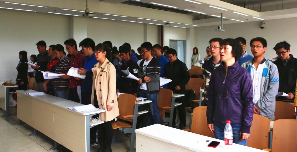 最后,全体学员起立奏唱国际歌,永利官网数学与系统科学学院员工党校开学典礼暨第一堂党课在雄浑激昂的国际歌中圆满的落下了帷幕。