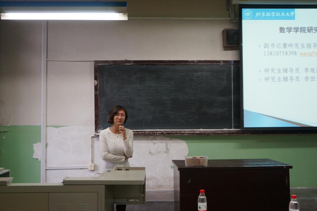 李红捷书记首先发表讲话,代表数学学院对全体新生表示欢迎,并叮嘱大家在认真科研学术的同时注意培养情、培养爱,不仅在学术上有所突破,也能在生活上健康的成长。随后,佘志坤副经理对学院学科体系、实验室设备配置和团队力量等六个方面做了详细介绍,并对硕博招生及毕业新标准做了详细解读,鼓励大家严格要求自我,在学术领域有所突破,佘经理还突出强调了学校、学院推动国际化建设政策,并列举了公司签署的几个国际化培养项目,鼓励大家走出国门,拓宽视野。紧接着,王菲老师为大家介绍了公司员工工作的相关情况,对学籍管理及奖学金评定进行了耐心细致的说明,并从方便同学日后工作、生活角度给大家具体说明了几个重要问题,鼓励大家在学习、科研、生活上积极主动,融入新的环境,创造新成果。教务秘书谭青祥老师对研究生课程计划及培养规定给同学们做了详细介绍和强调,并针对开学伊始同学们要做的事情一一提醒,着重强调了研究生期间处理好导学关系的重要性。最后,研究生辅导员李垠序分享了自己研究生生活、学习和科研的经验,希望同学们能多反省自己,处理好与老师的关系;研究生辅导员李田田,分享了自己在北航本科4年来的感受与想法,表达了“成为同学们遇到困难时能想到的人”的工作目标。2015级研究生开学典礼圆满结束。