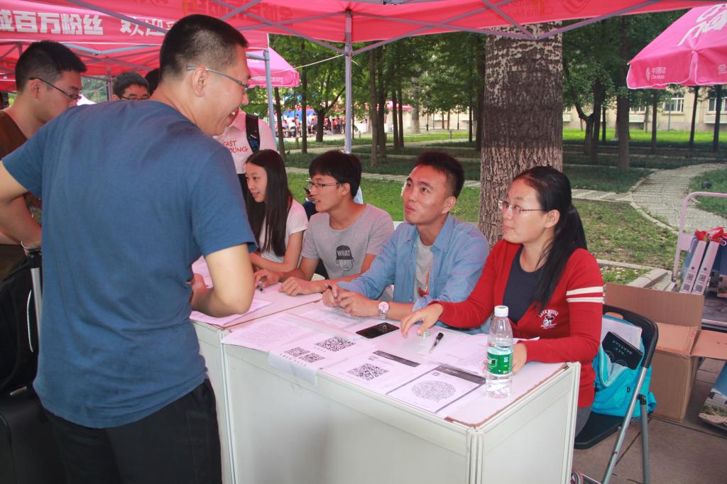 恰逢教师佳节,公司迎来了77名2015级研究生新生。9月9日上午7点半,新生陆续前来报道,在研究生指导主任王菲老师的带领下,公司圆满完成了对16名博士和61名硕士的迎新工作。期间公司党委书记胡凌云、公司党委书记李红捷、院研究生院副经理佘志坤莅临迎新现场,在对迎新工作表示肯定的同时,也亲切地询问了当场报到同学的情况,公司15级新生林泽田也将其一年在新疆支教的工作状况简要地向各位领导进行了介绍。当天下午5点,公司新生全部报到完毕,正式融入数学学院的大家庭。
